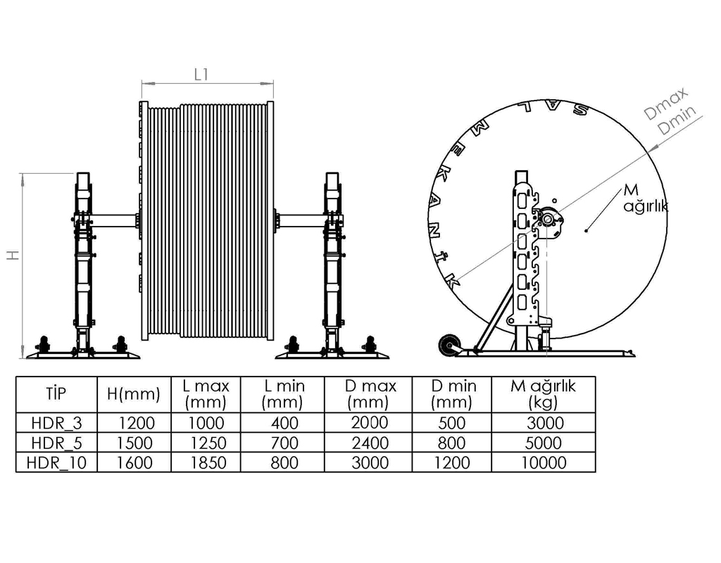SLM_HDR sistemli hidrolik kaldırma olarak çalışan bir sistemdir. Sistem Telekobik basamak şeklinde olup, makara çapına uygun olarak basamak ayarlanabilen ve buna bağlı olarak hidrolik olarak çalışan bir sistemdir.
