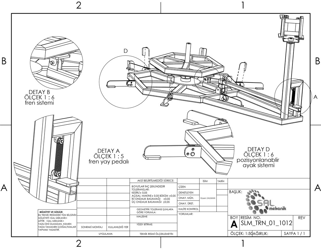 Şekil 5 Sehpa sistemi mevcuttur sistemde alt kısımda uzaktan kontrollü pedal sistemli fren bulunmaktadır. bu frenleme sistemi ayaralanabilir olarak kullanılacaktır.